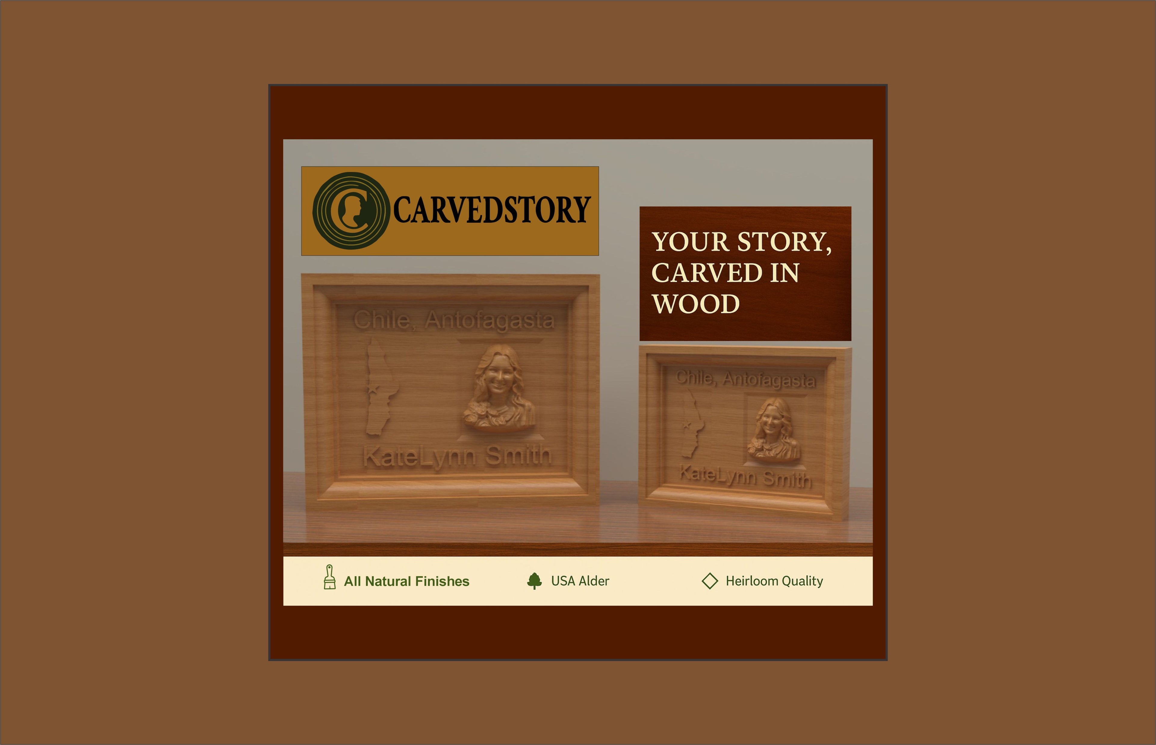 At CARVEDSTORY, we create heirloom-quality wooden plaques that capture life’s most meaningful moments — carved with precision, warmth, and care. Each piece begins with your photographs and personal details, carefully transformed into a lifelike relief portrait and engraved design that celebrates love, faith, and family.